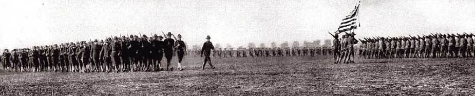 On April 6, 1917, the United States Congress declared war on the German Empire and entered the Great War. In the rush to mobilize troops, individual states competed with each other for the honor to be the first to send their National Guard units into combat. Secretary of War Newton D. Baker authorized the organization of a Division made up of National Guard units from 26 different states and the District of Columbia.
